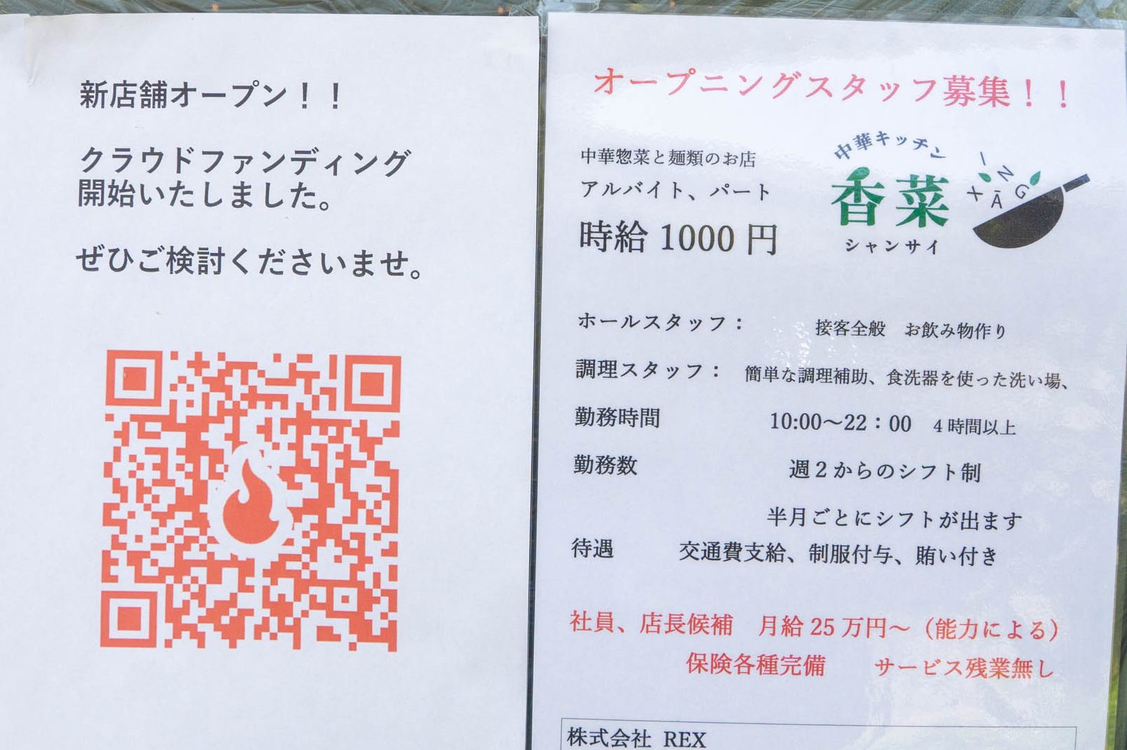 ブランチ松井山手に「中華キッチン 香菜」という中華店ができるようです。