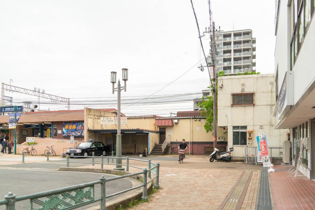 右側がクリニック、左側が枚方公園駅という位置関係。ロータリー沿いです。