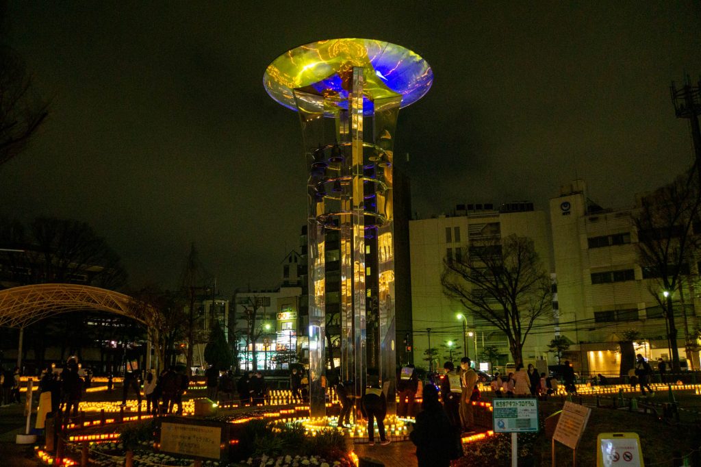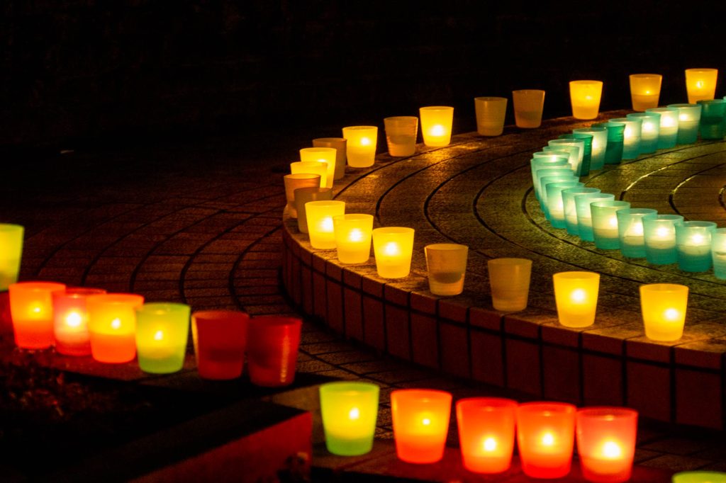 「平和の燈火(あかり)」は2011年から開催されていて今年で11回目となる、平和と新型コロナウイルス感染症収束への願いを込め、たくさんのキャンドルが並べられるイベント。市内外の大学生による実行委員会が企画・運営しています。