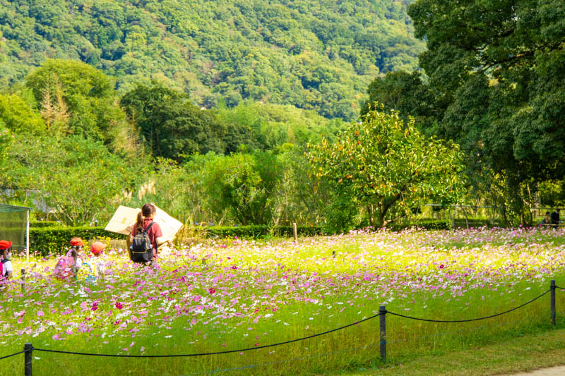 コスモスの背丈的に小さいお子さん中央で歩かせ、横から写真を撮るみたいなことをすれば映えそうかと。
