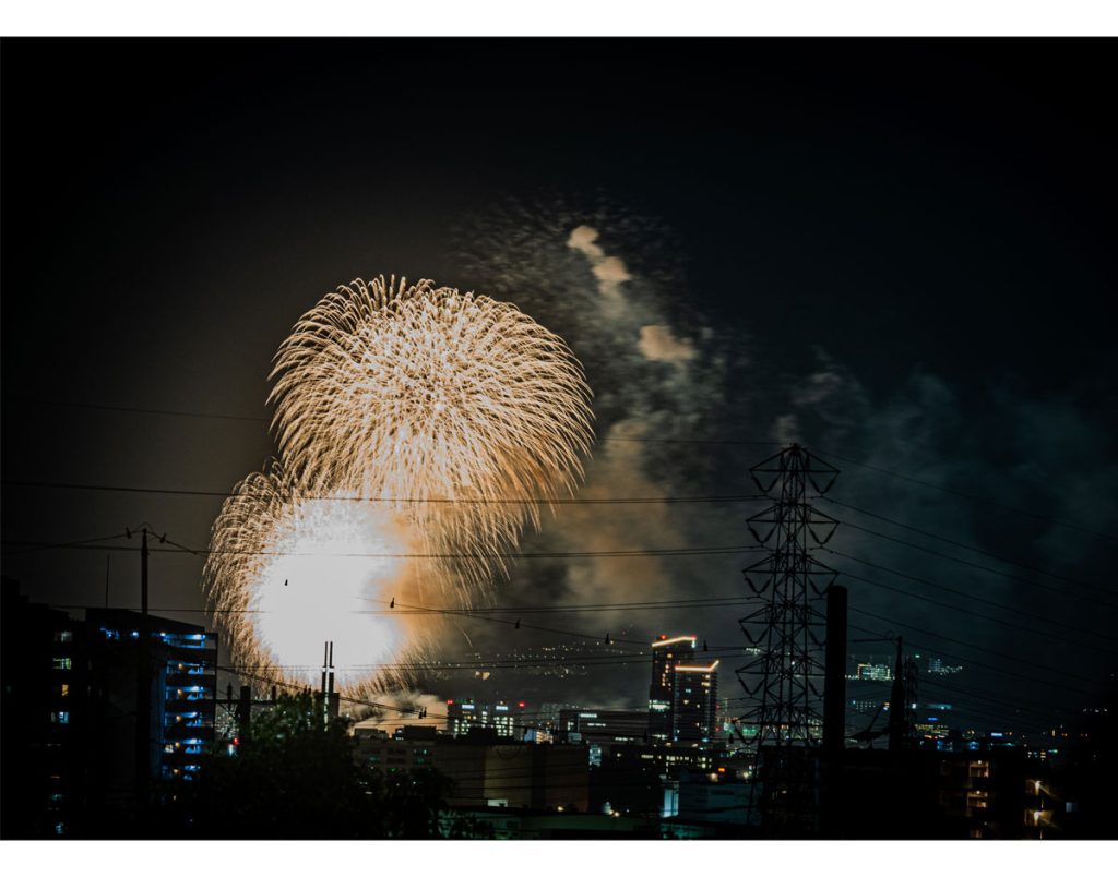 近くではないものの、望遠レンズで迫力ある花火が撮影できました。
