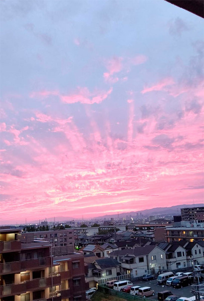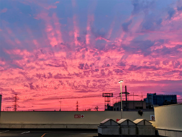関西スーパー牧野店の屋上駐車場で、すごく神秘的な夕焼け空に遭遇しましたので、提供させていただきますね☆