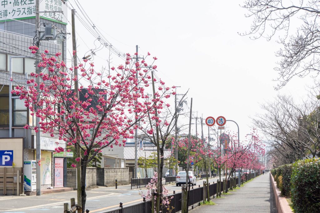 そして、「コマツ 大阪工場」前には椿寒桜。