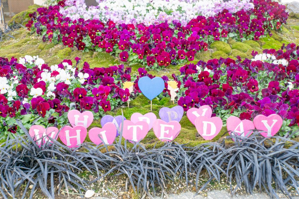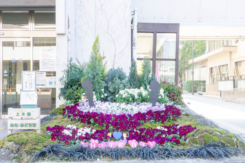 枚方市役所別館前の花壇がホワイトデーな雰囲気を出していました。