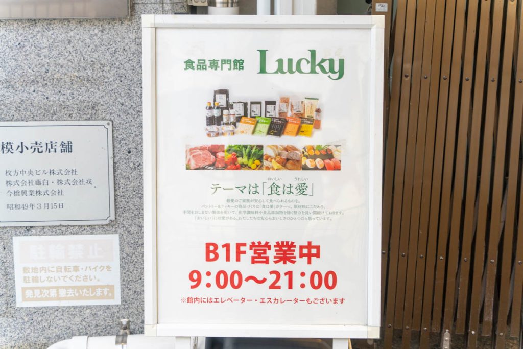 スーパーラッキーは枚方市駅前以外にも交野や寝屋川にも店舗がありますね。