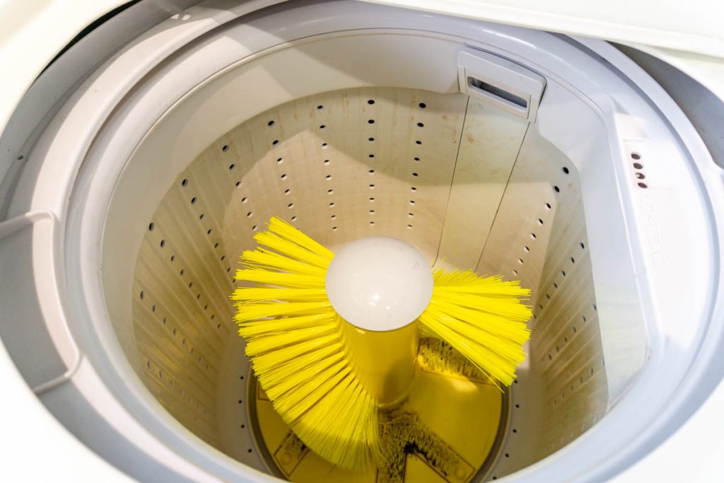 洗濯槽の中を覗いてみると、しっかり汚れを落としてくれそうなブラシが。