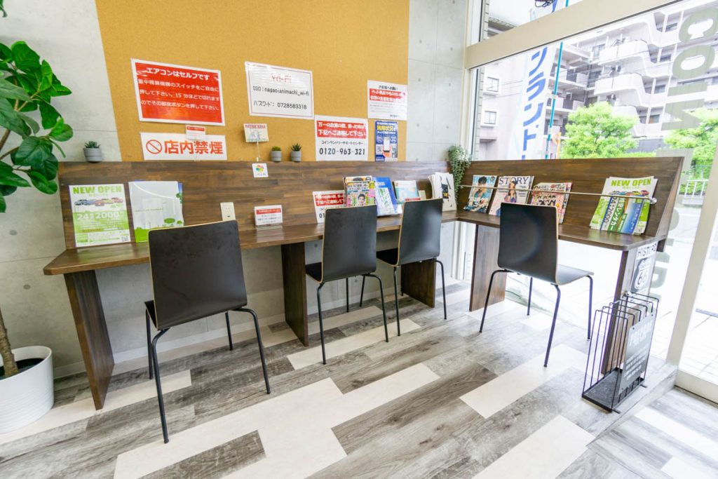 店内にはカウンターもあり、雑誌・無料Wi-Fi・電源も揃っているので、置いてある本を読んで休憩したり、テレワークにも便利です。