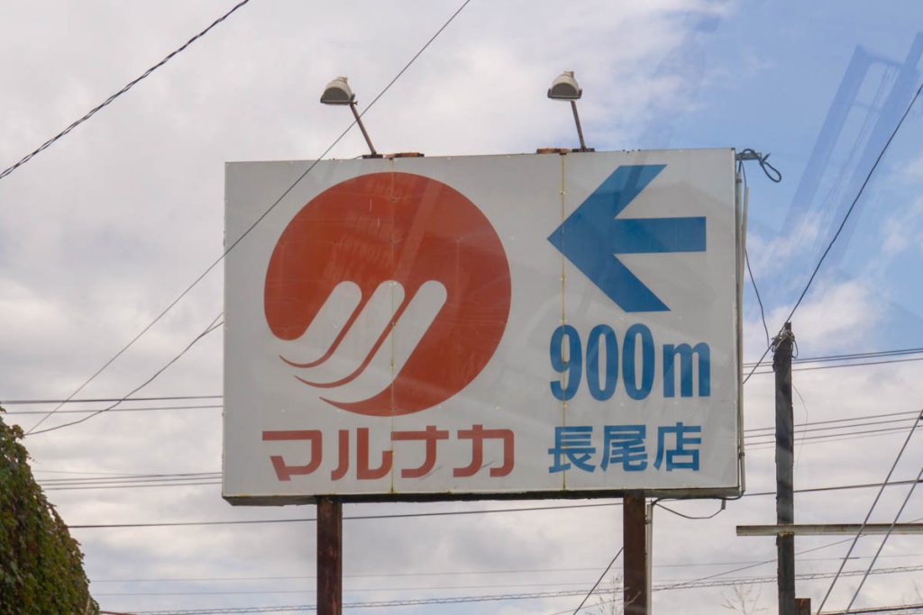 駅前の看板。いくつ長尾があるでしょう?正解は……8つでした!(意外と少ない)