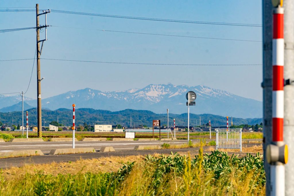 ふと目を遠くに向けてみると、そこには冠雪した枚方市民おなじみの国見山……を彷彿とさせない新潟の山々が。山レベル高いよ……。
