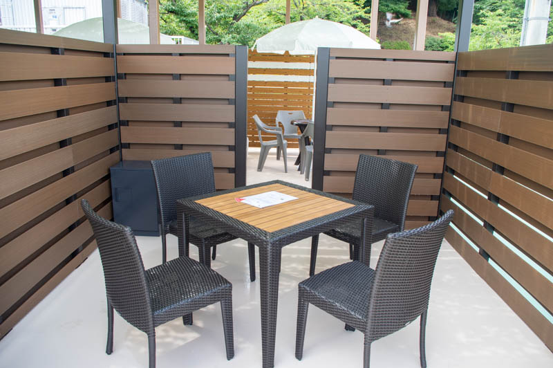 見通しがよく、木々と木目調のフェンスに囲まれたプライベートな空間になっていました。う〜ん優雅!