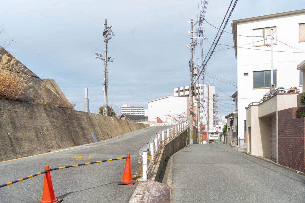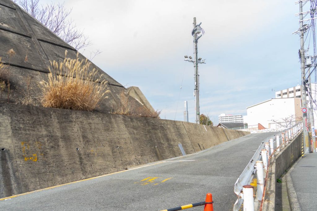 こっちにいくと、「ら・ぶーか」のそばから万年寺山周道に出まして、そこを右に行くとローソンの前を通って枚方市駅方面。