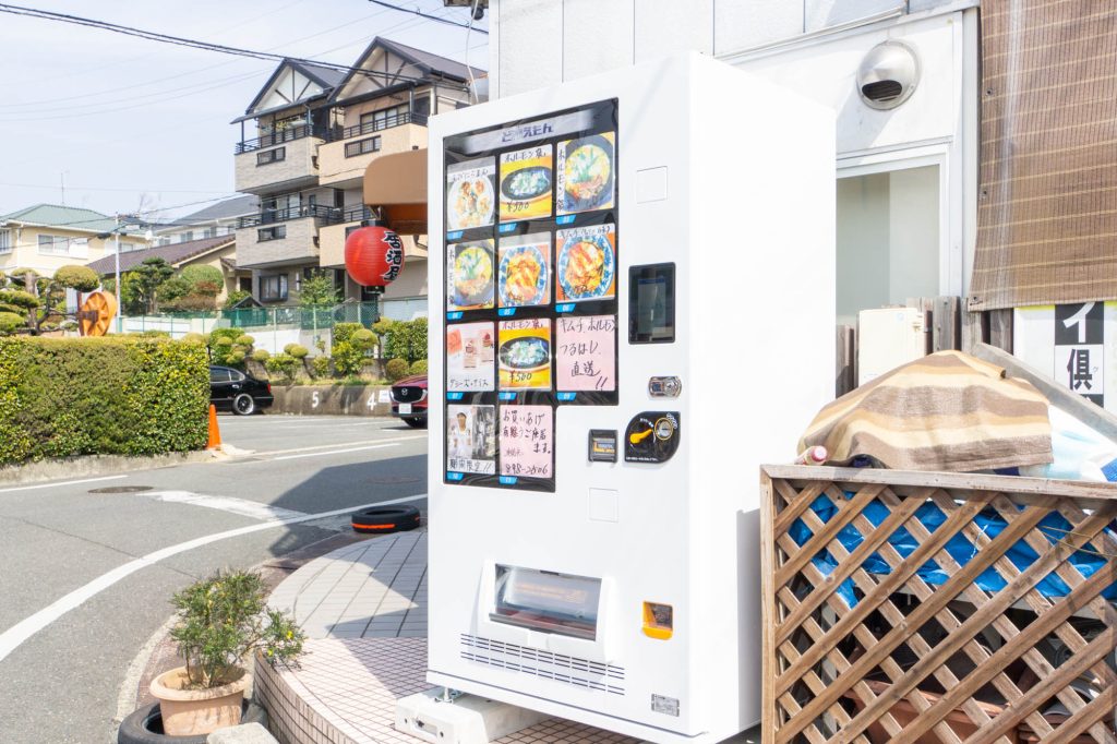 星ヶ丘駅近くにホルモン料理やキムチを販売する自動販売機が設置されています。