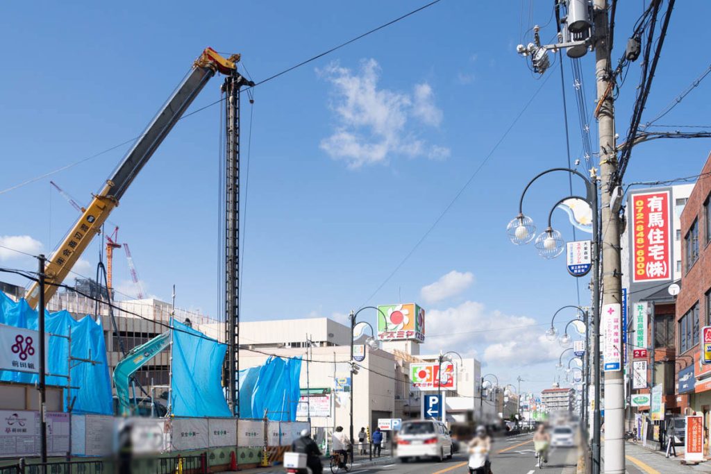 イズミヤ枚方店のとなりにできる寺院と納骨堂の工事が始まっています。