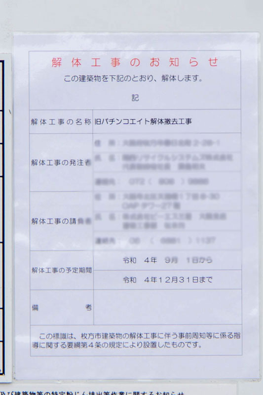 春日元町のパチンコ店「エムズ+エイト」があった場所がほぼ更地になっています。