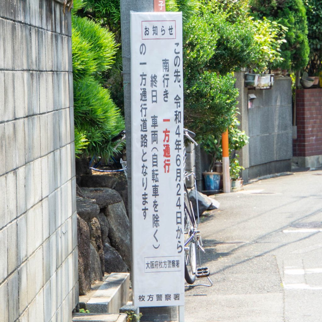 茄子作北町にある枚方消防署川越出張所の一筋裏の道が一方通行になるようです。