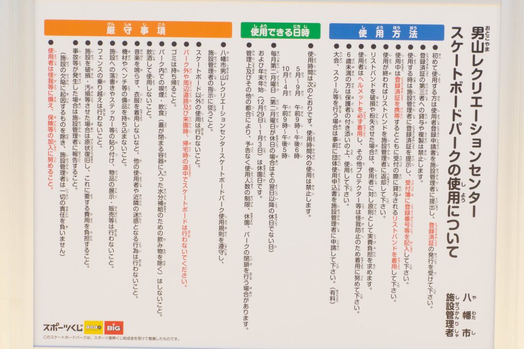 使用者はヘルメットを必ず着用し、その他プロテクター等は怪我防止のため着用に努めてくださいとのこと。