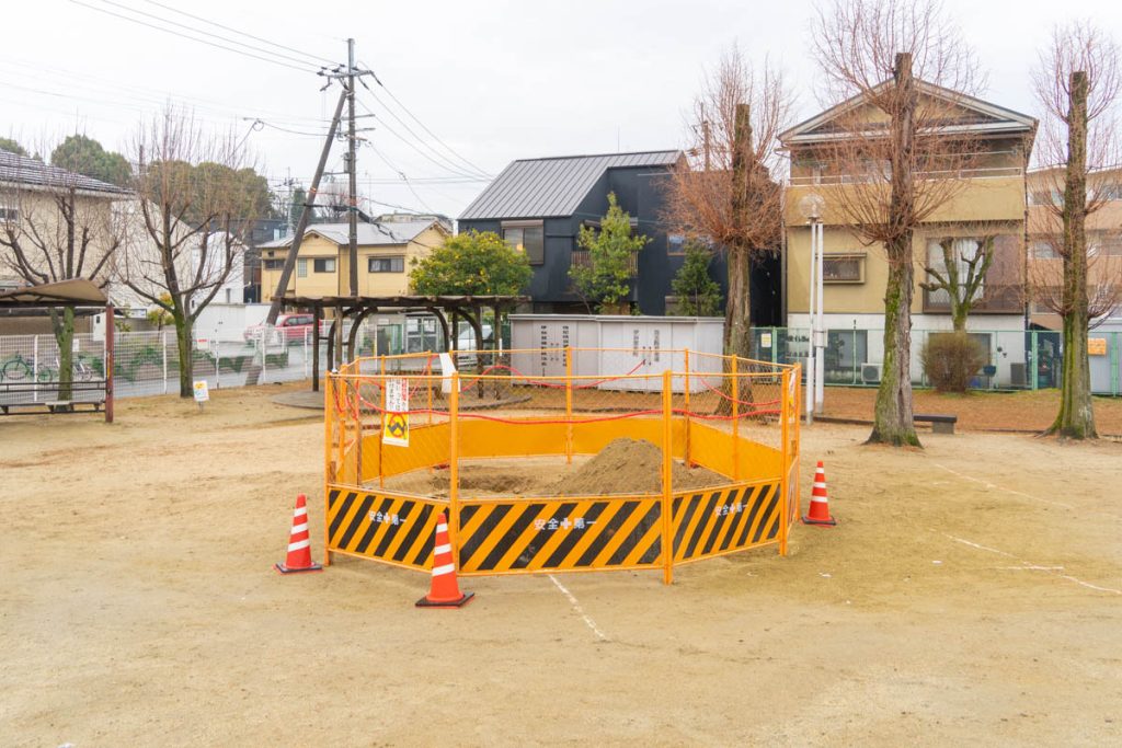 遊具更新工事ということで、おそらく新しい遊具が設置されるのだと思います。期間が3月15日まで。