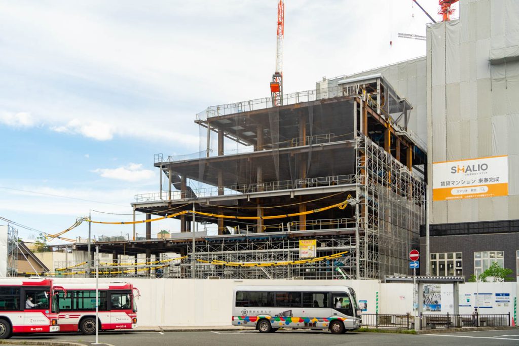 枚方市駅周辺再整備対象の建物の鉄骨がみえてきています。