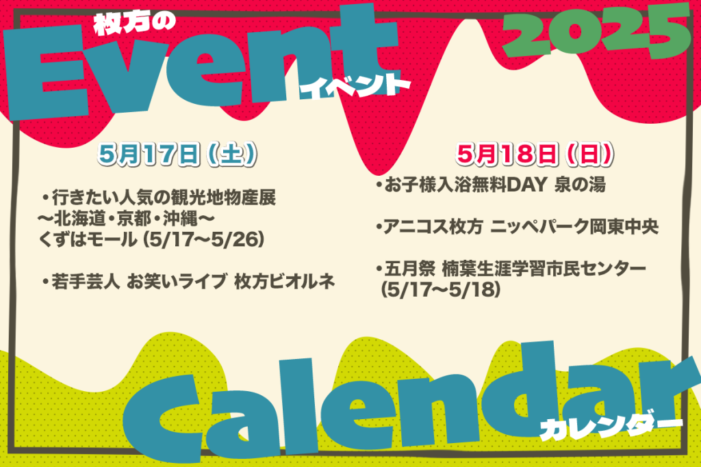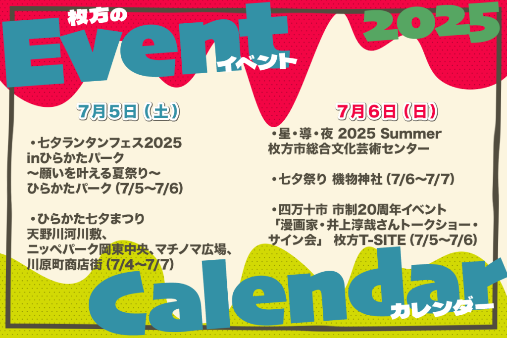 ひらつーメンバーにより厳選されたイベントのみ載せる”使える”イベントカレンダー、それがこの「枚方市の注目イベントカレンダー2025」! イベントの情報提供、お待ちしております!ございましたらぜひこちらの情報提供フォームか […]