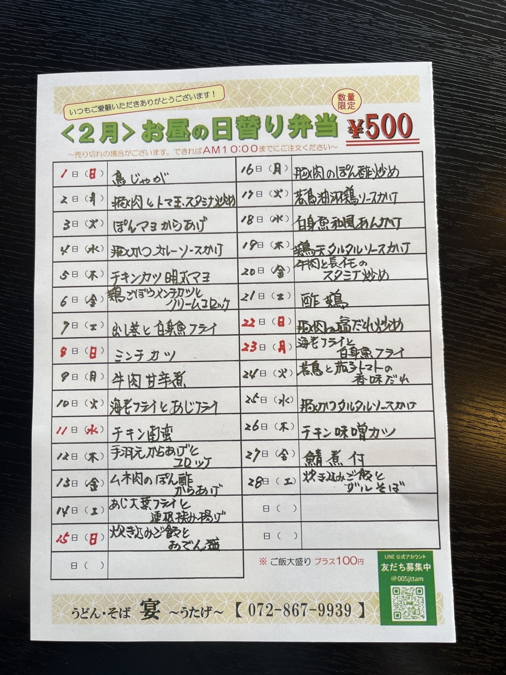自家製麺 宴(うたげ)です。いつもご愛顧いただきありがとうございます。当店では、2月もお昼限定の日替 […]- 2026年2月4日