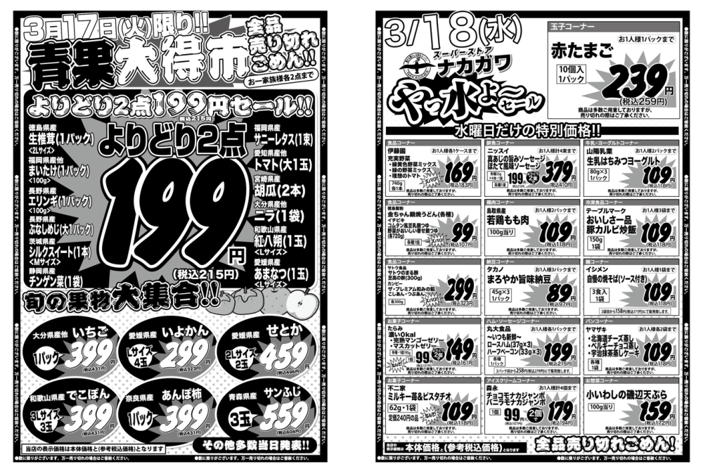 スーパーストアナカガワでは、3/17(火)と3/18(水)の2日間、毎日の献立づくりにうれしいお買得 […]- 2026年3月17日