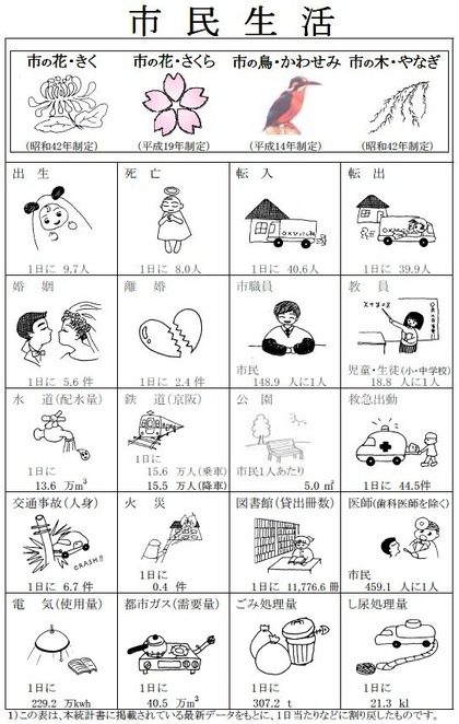 枚方の離婚数は1日に2.4件。図書館の貸出数は1日1万冊以上。微妙なイラスト付きで紹介【統計】