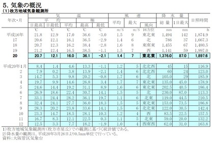 平成20年から過去5年の枚方の気温などの推移【統計】