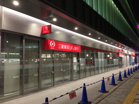 三菱東京UFJの看板ができてます。建物上部にはECCの看板。他のスペースはまだ出てません。(携帯から更新) -
