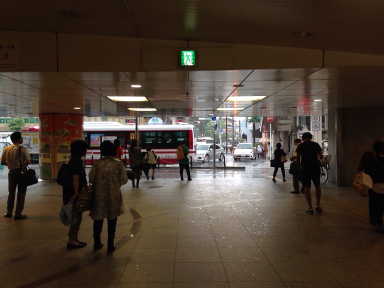 急な雨に、枚方市駅で立ち往生する人がたくさん。(カズマ@ひらつー) -