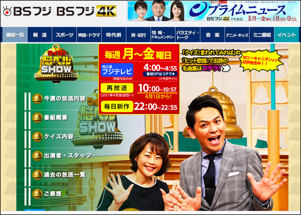 BSフジ「クイズ!脳ベルSHOW」でひらパーが出るみたい。6月27日放送