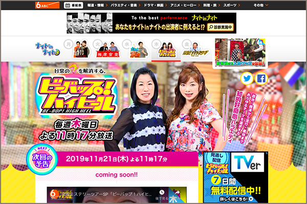 ABC「ビーバップ!ハイヒール」でひらパーが映るみたい。11月21日放送