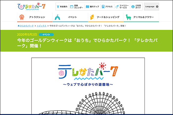 ひらかたパークがお家でアトラクションを楽しめる「テレかたパーク」という新しい試みを行なっています。今年のゴールデンウィークは「おうち」でひらかたパーク! 「テレかたパーク」開催! | ひらかたパーク上記リンク先によると、 […] -
