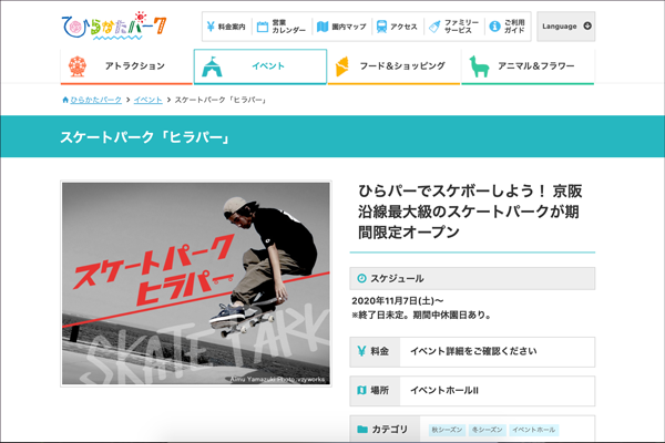 ひらパーにスケートボードパークができるみたい。京阪沿線最大級。11月7日オープン