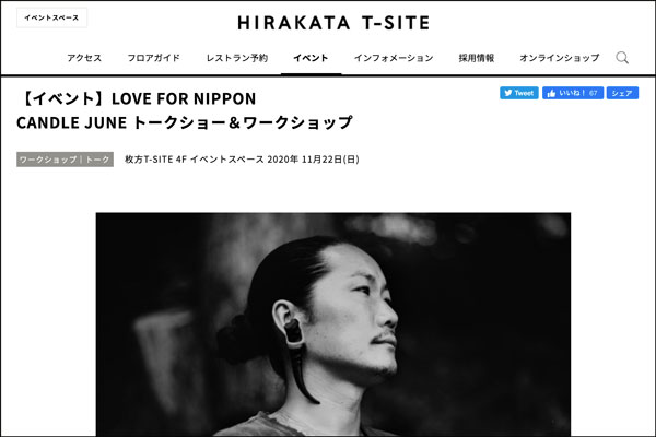 枚方T-SITEにアーティストのCANDLE JUNEさんがやってくるようです。【イベント】LOVE FOR NIPPON<br> CANDLE JUNE トークショー&ワークショップ | イベント| 枚方 […] -