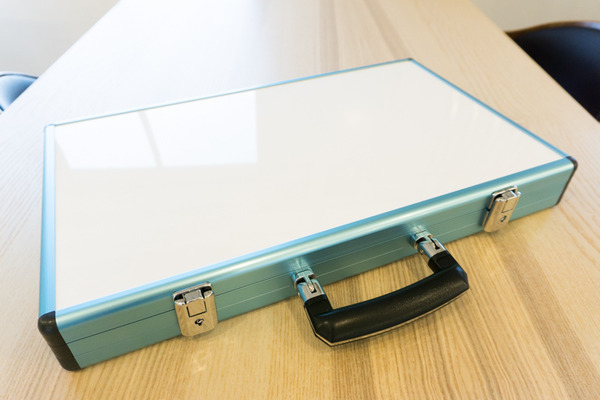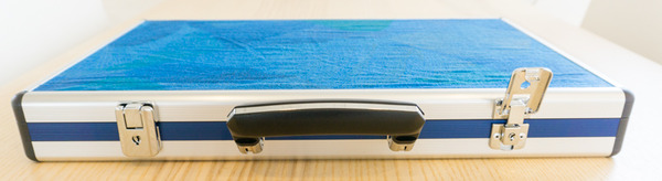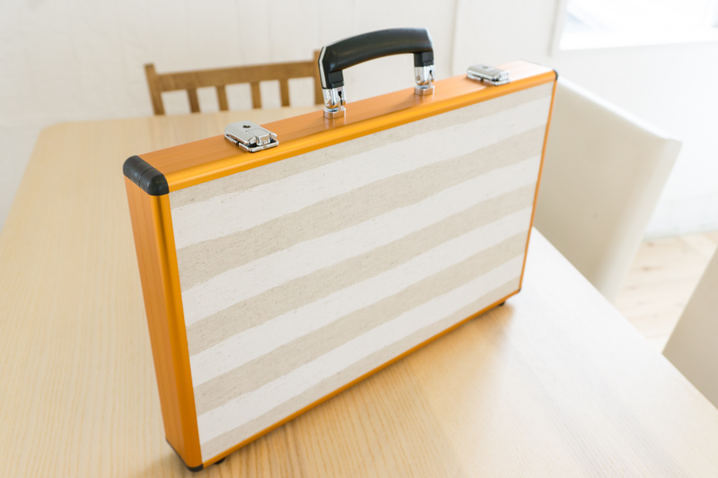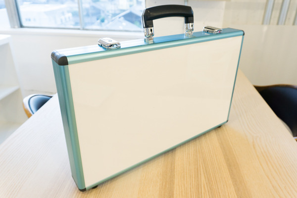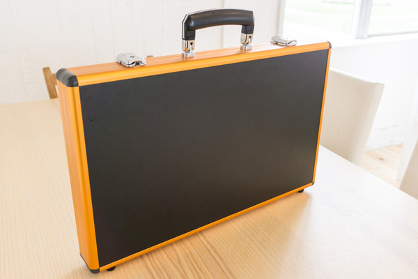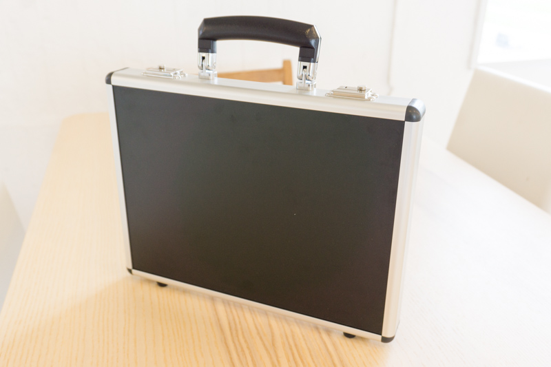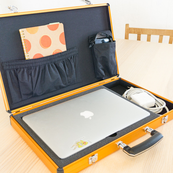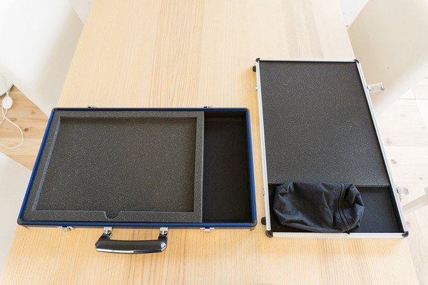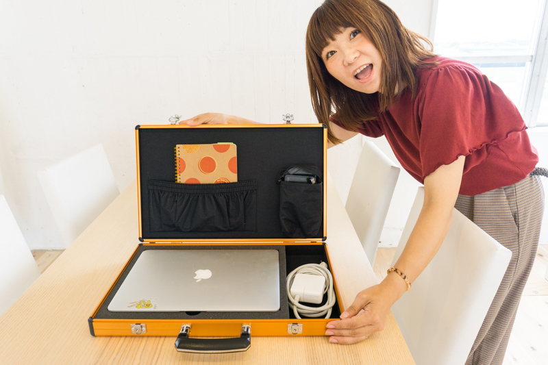 こだわりポイント②:大きめポケットには取材ノートを入れられるように、小さめポケットにはハードディスクを。柔らかいカバンに入れていると落としたときが心配ですが、アルミケースなら安心!