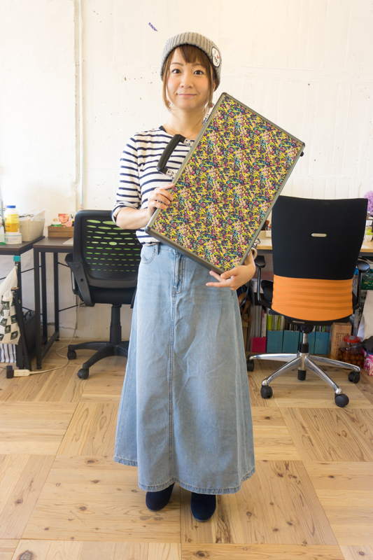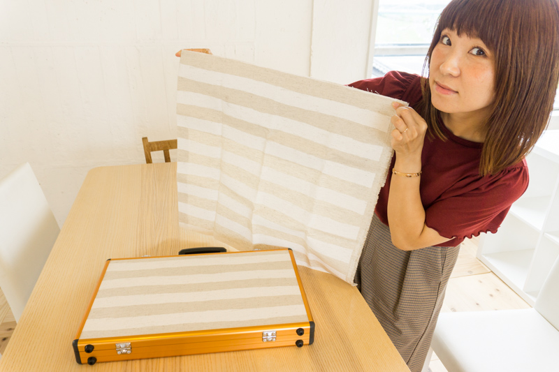 布は専用のボンドでアルミ板にくっつけていきます。厚みや素材にもよりますがほとんどの布がキレイに仕上がります!