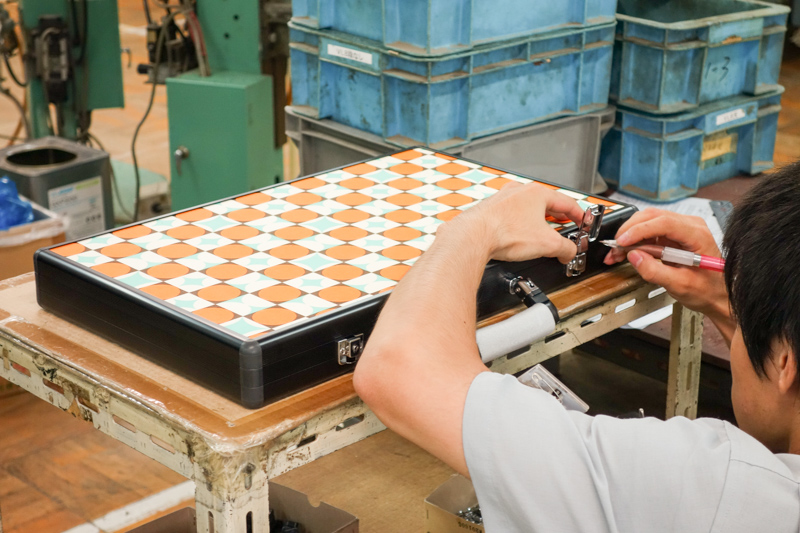 ひとつひとつ丁寧につけてくれる金具はケースのサイズや仕様に合わせてちょうどいいものを選んでくれます!