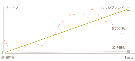 もし同じ「資金を貯めておく」という条件で考えると『なにわファンド』の方が、数年後に得られる利益は預金よりも大きくなる可能性が高いんです」