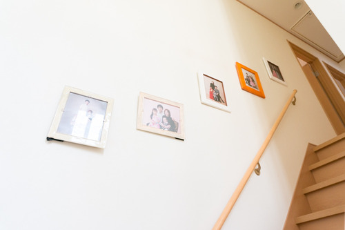 玄関正面にある階段には、毎年撮っているという家族写真が飾られています。