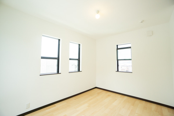 この部屋は窓が多くて光がたくさん入り込んで明るいので、子ども部屋にはもってこいなんですよ〜!