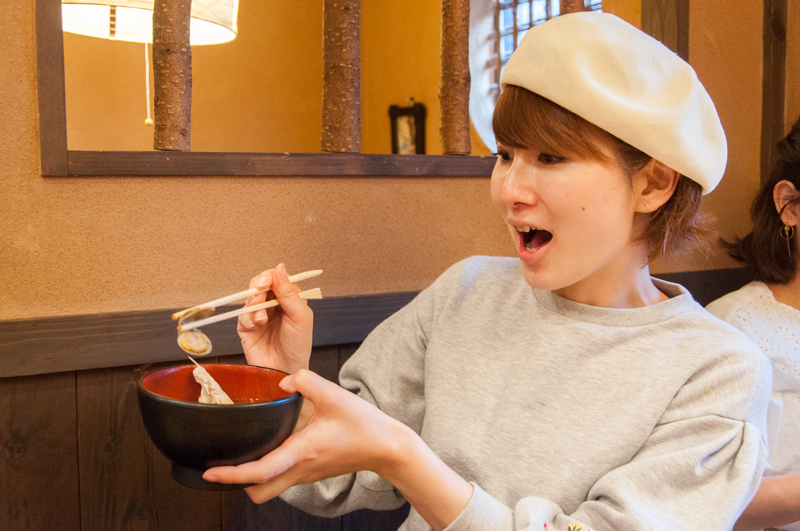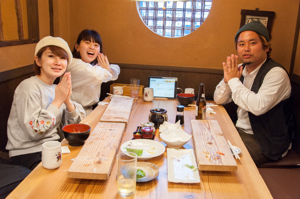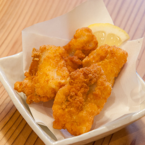 2人が食べているのは『あんこうの唐揚げ』。