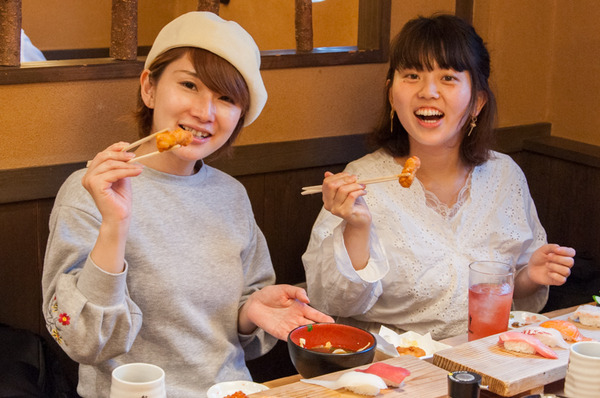 「うんうん、ほんまに。食べ放題ってうっすいネタがのっているイメージやけど、これはかなり食べごたえあるって前来た時に思った!」