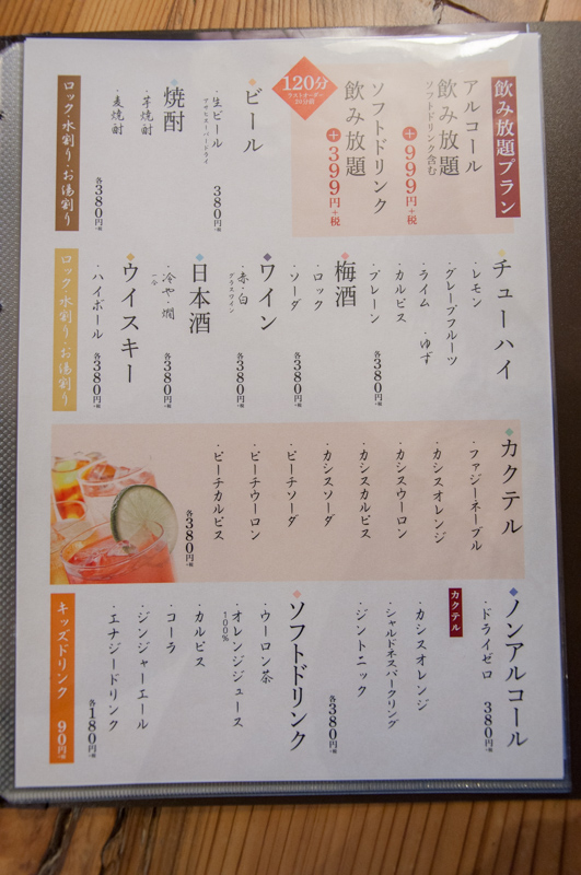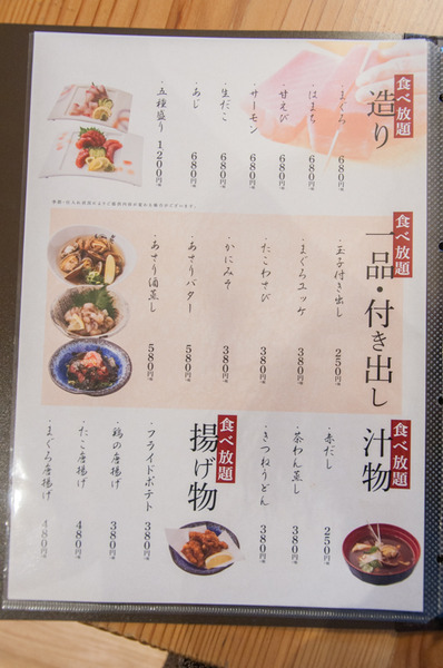 食べ放題には、60分間と120分間の2コースがあって、それぞれ「特上盛り合わせ」と「上盛り合わせ」があるみたい。あと、単品でも頼めるねんて!