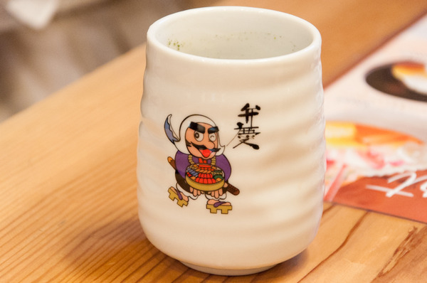 湯呑みは弁慶オリジナル。このマークは枚方市民なら一度は見かけたことがあるんじゃないでしょうか。