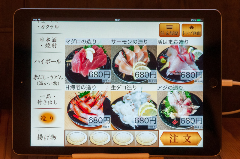 テーブルにあるタッチパネルで簡単に注文することができます。