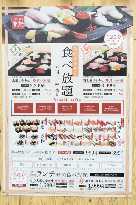 今回は120分間の寿司食べ放題を注文!