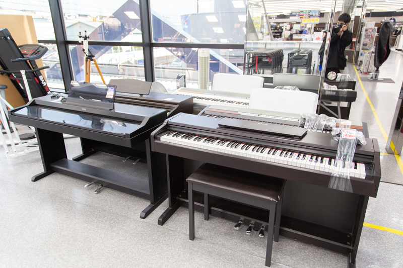 この手前の電子ピアノは6,380円!お手頃やん♪」