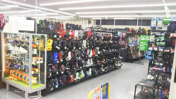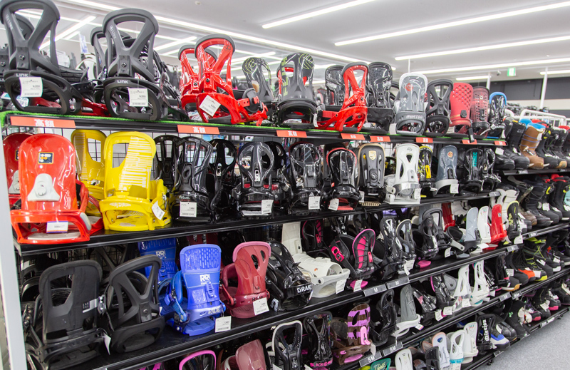 スノボ関連売り場には板に取り付けるビンディングも販売。