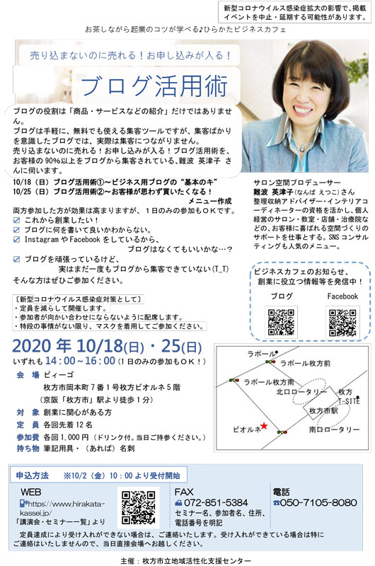 10/25(日)ブログ活用術2~お客様が思わず買いたくなる!メニュー作成
