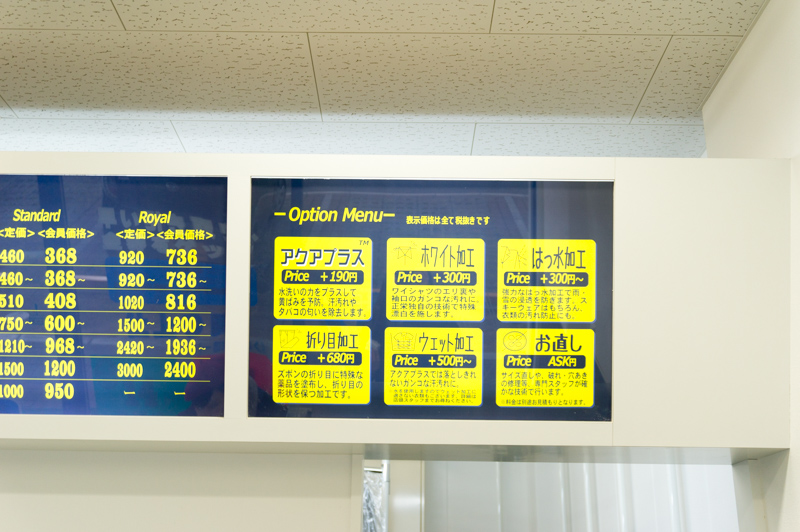 ドライクリーニングのものに+190円でできる、水洗い感覚 の『アクアプラス』はリピーターの方も多く、おすすめ!!黄ばみを予防し、さらっとした仕上がりになります。